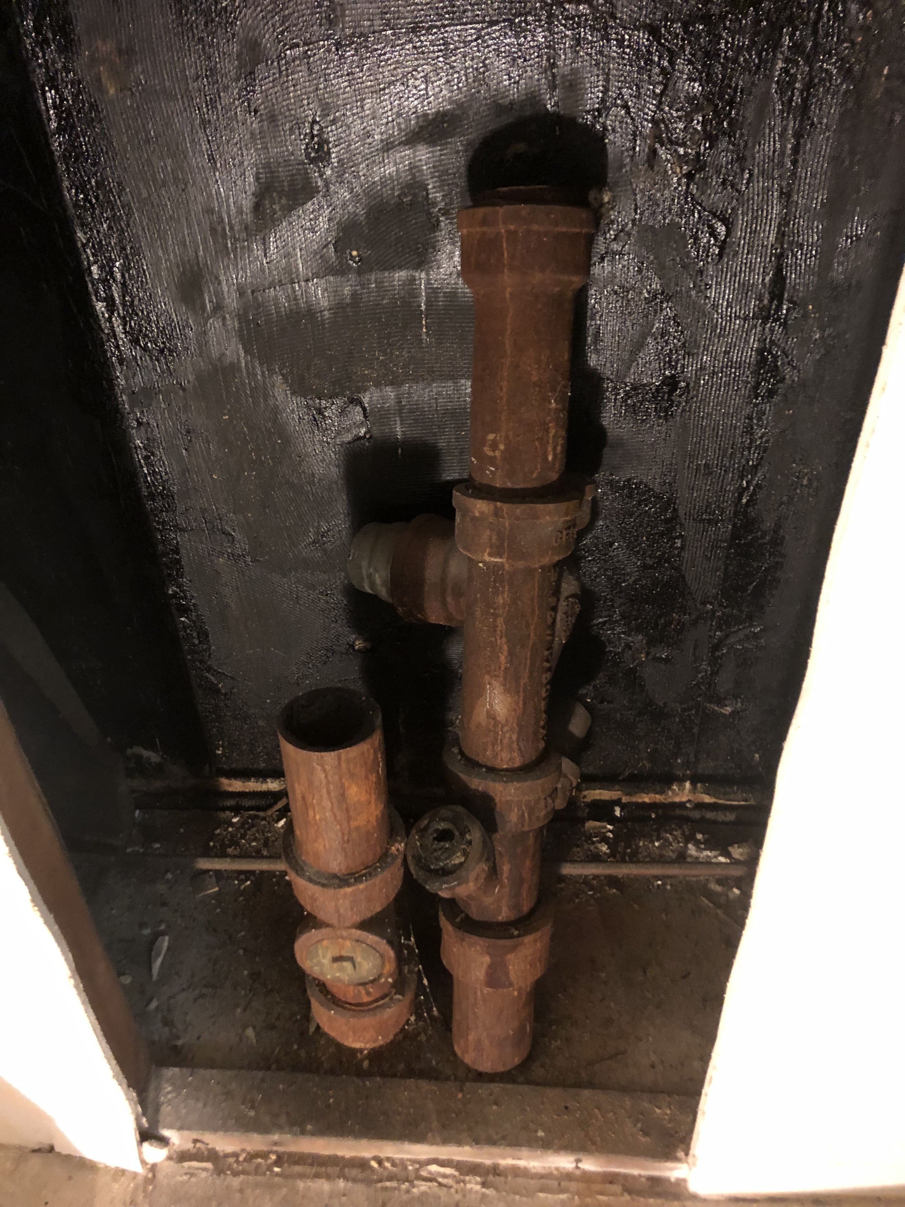 This is the main stack for the two apartments. This is the main waste line that goes to the street. While we were doing this work, we decided to upgrade it to PVC.