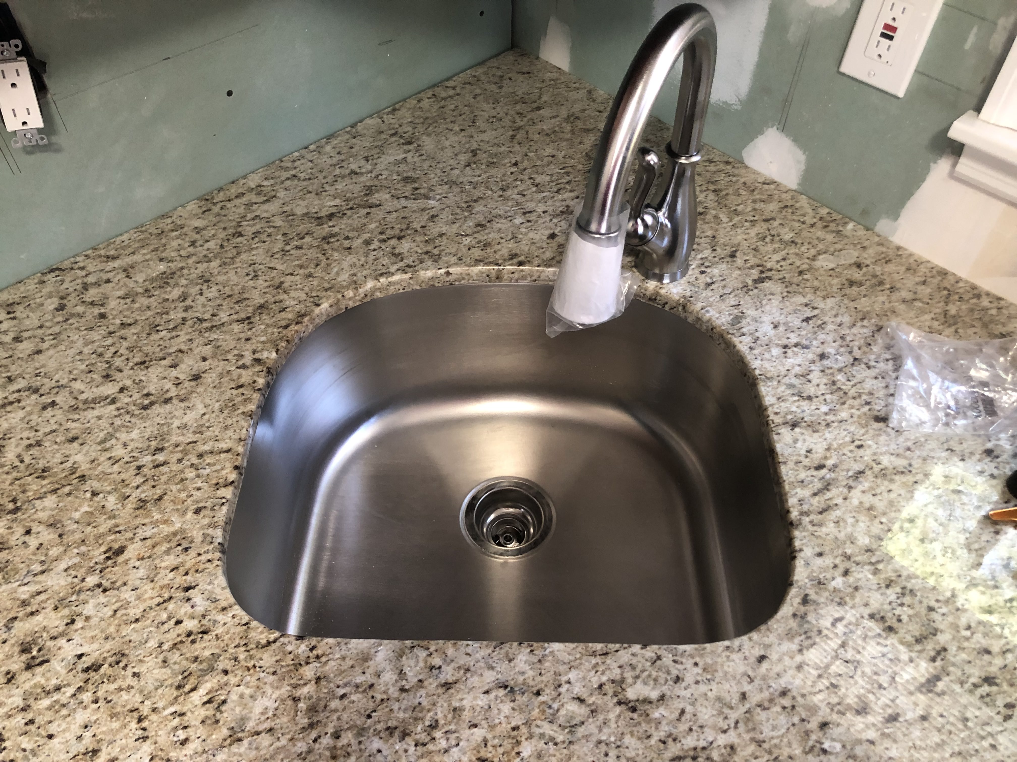 We installed the hot/cold water lines to the sink and the dishwasher. You can also see the PVC drain as well as the flexible hose for the dishwasher drain.